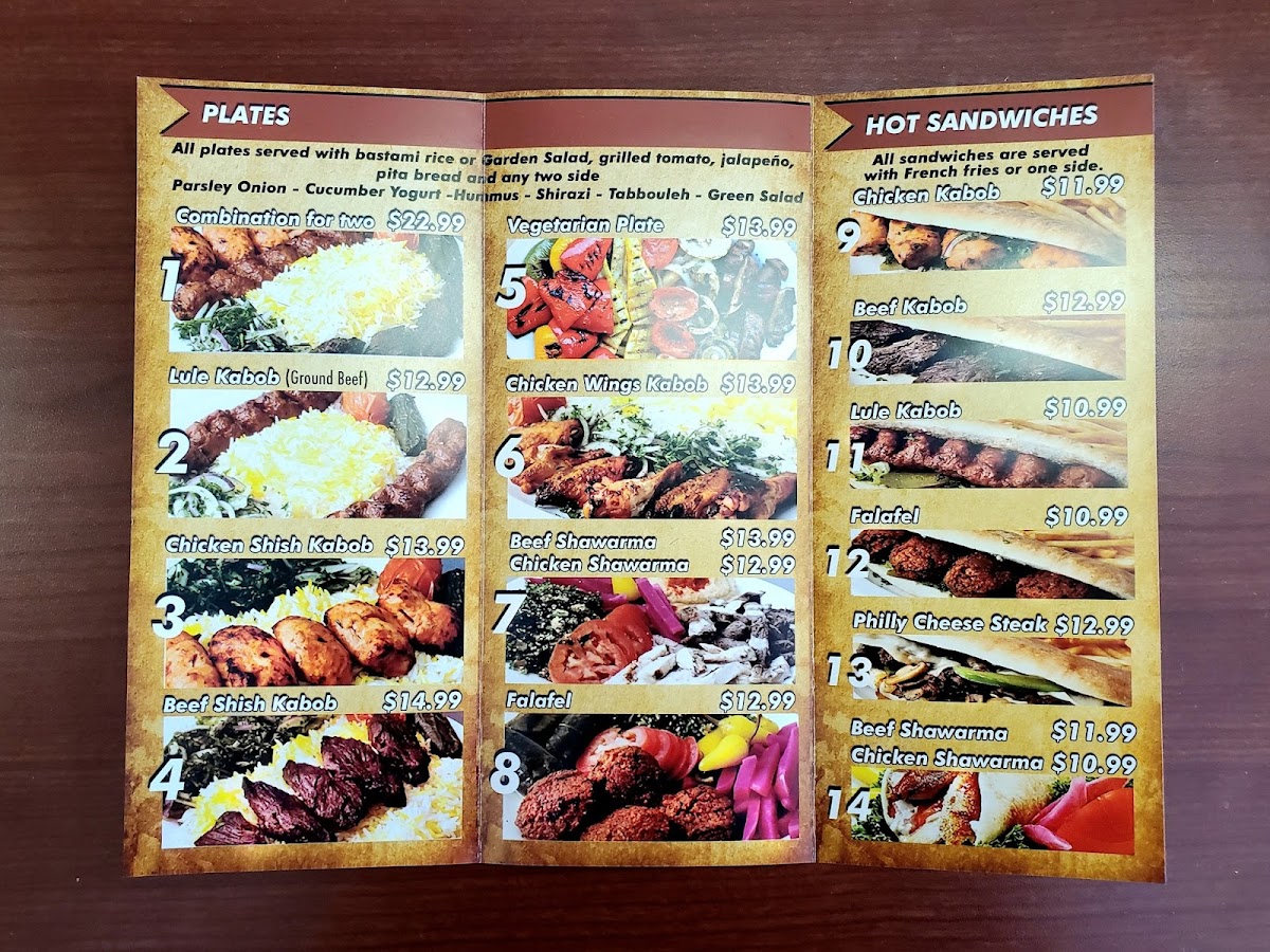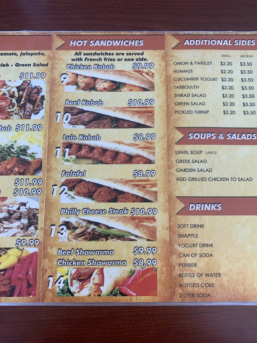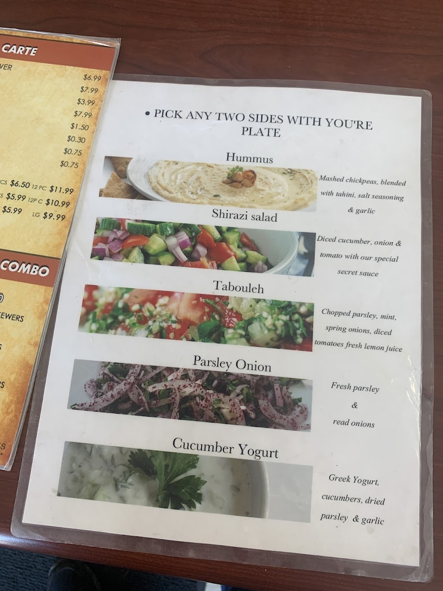Served with pita bread, hummus, pickles and tahini sauce.