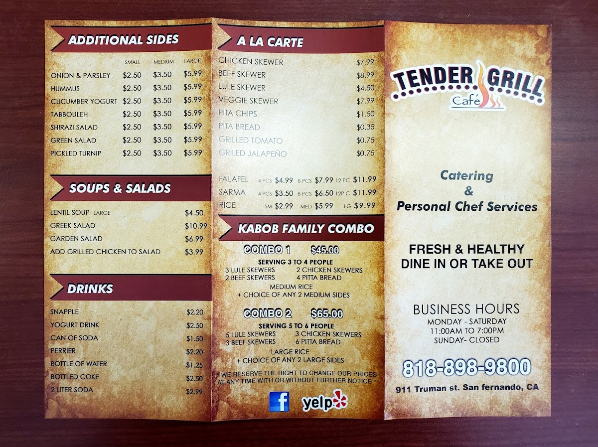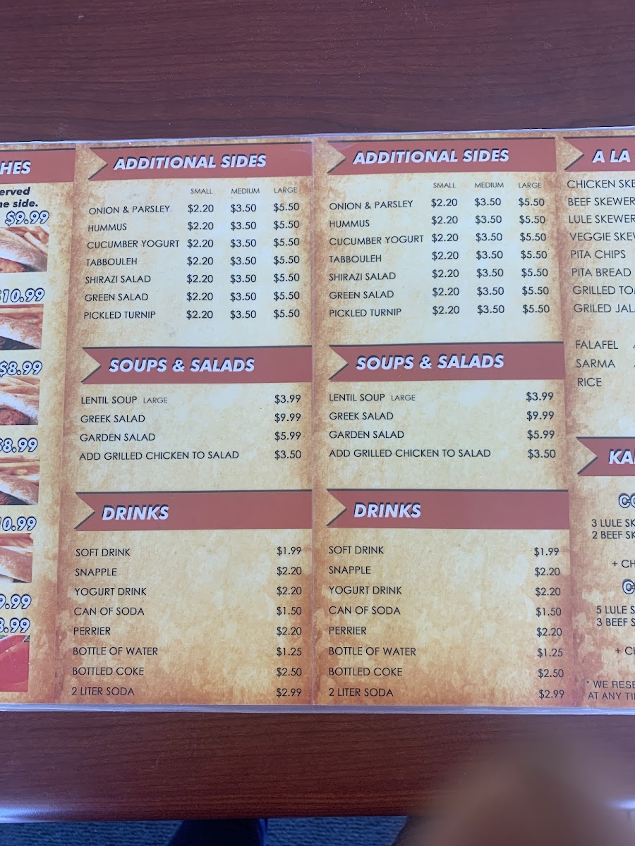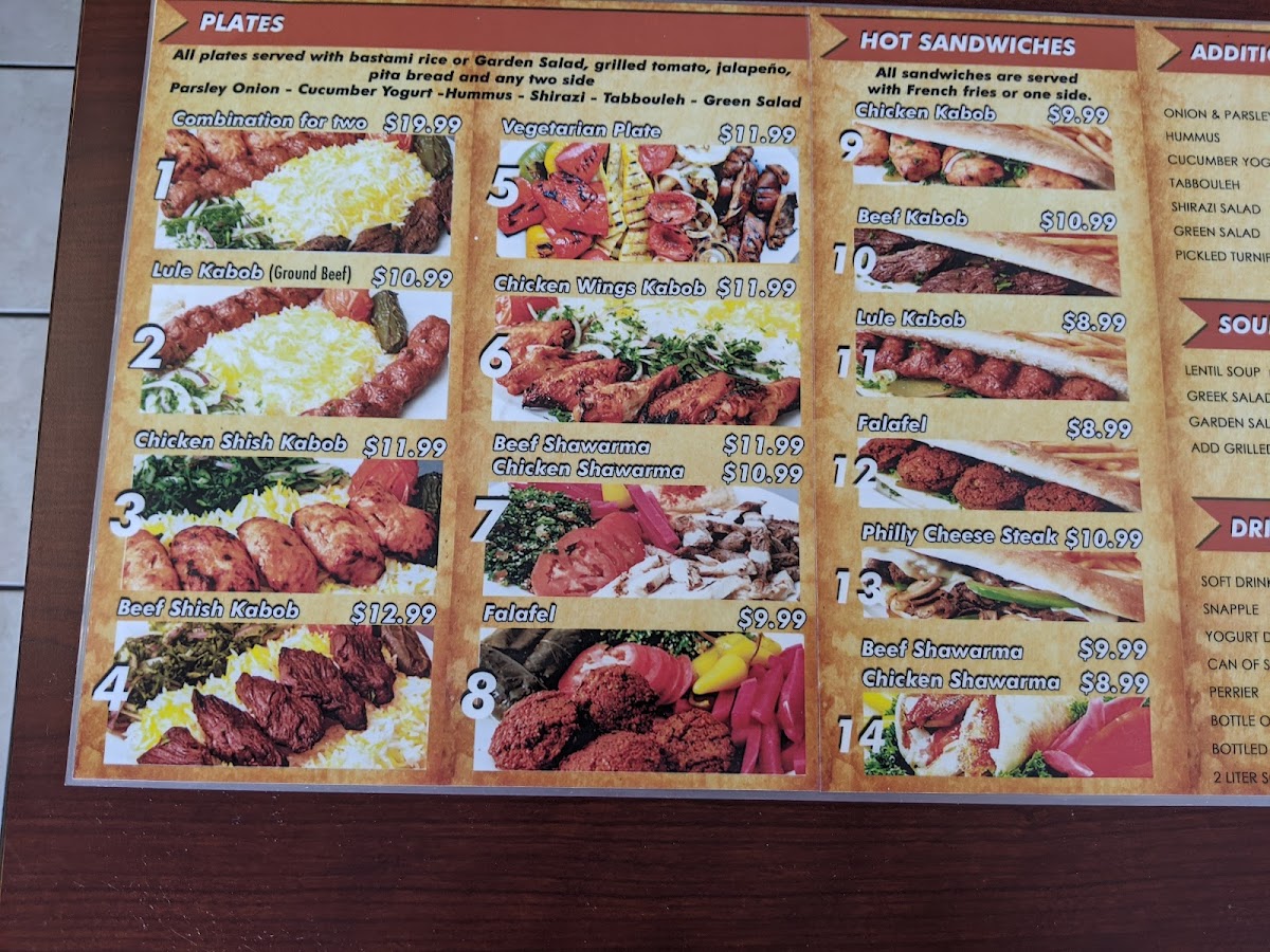 Served with pita bread, hummus, pickles and tahini sauce.